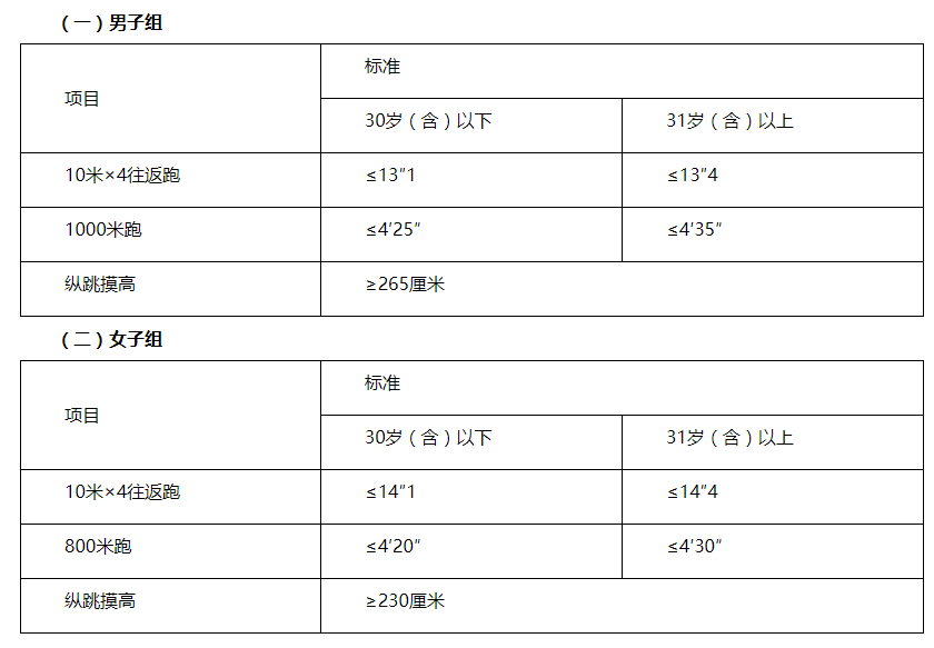 體能測評三項全部達標(biāo)方為合格。報考理化檢驗、獄醫(yī)緊缺職位的人員,體能測評三項中有兩項達標(biāo)的,視為合格。