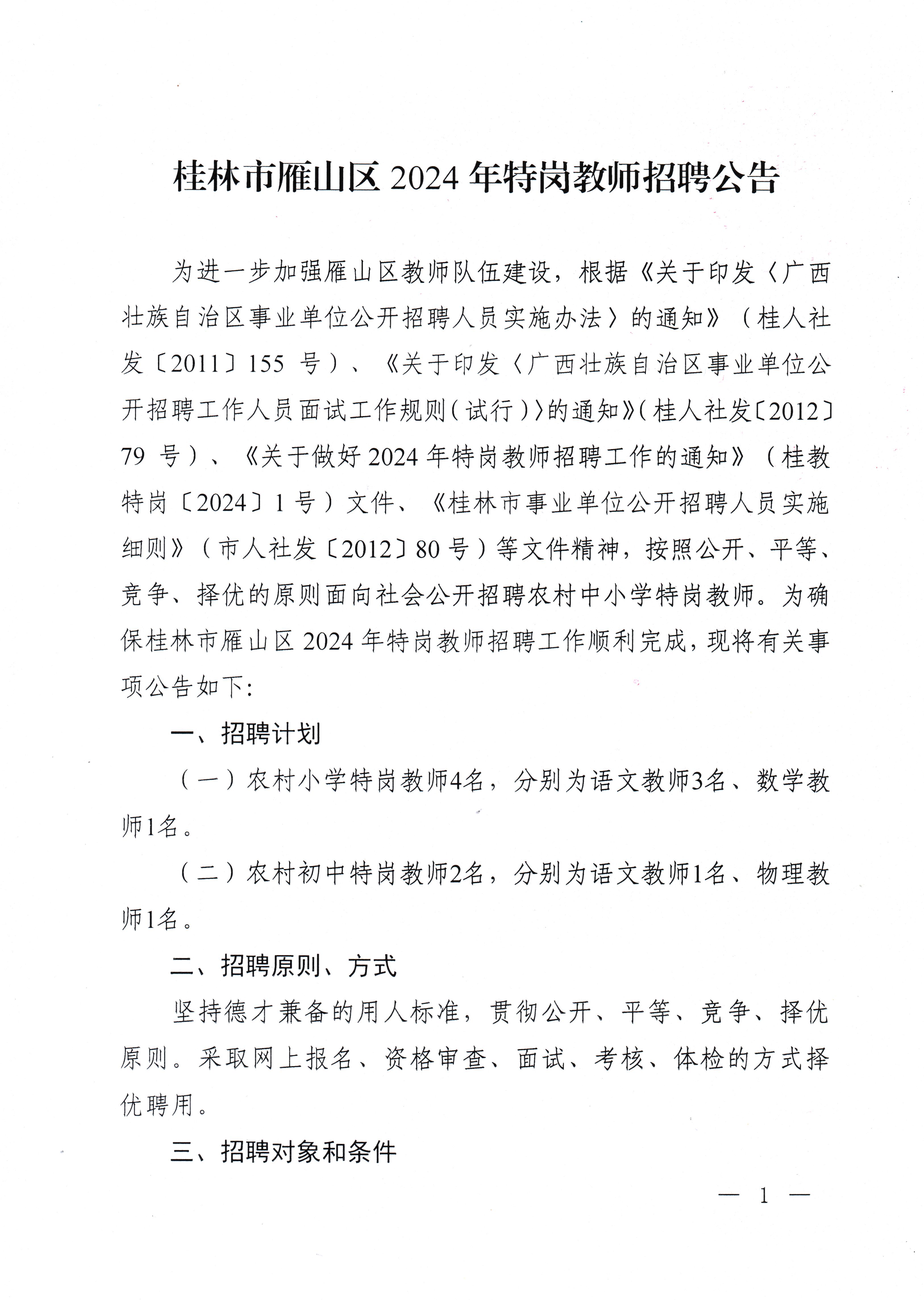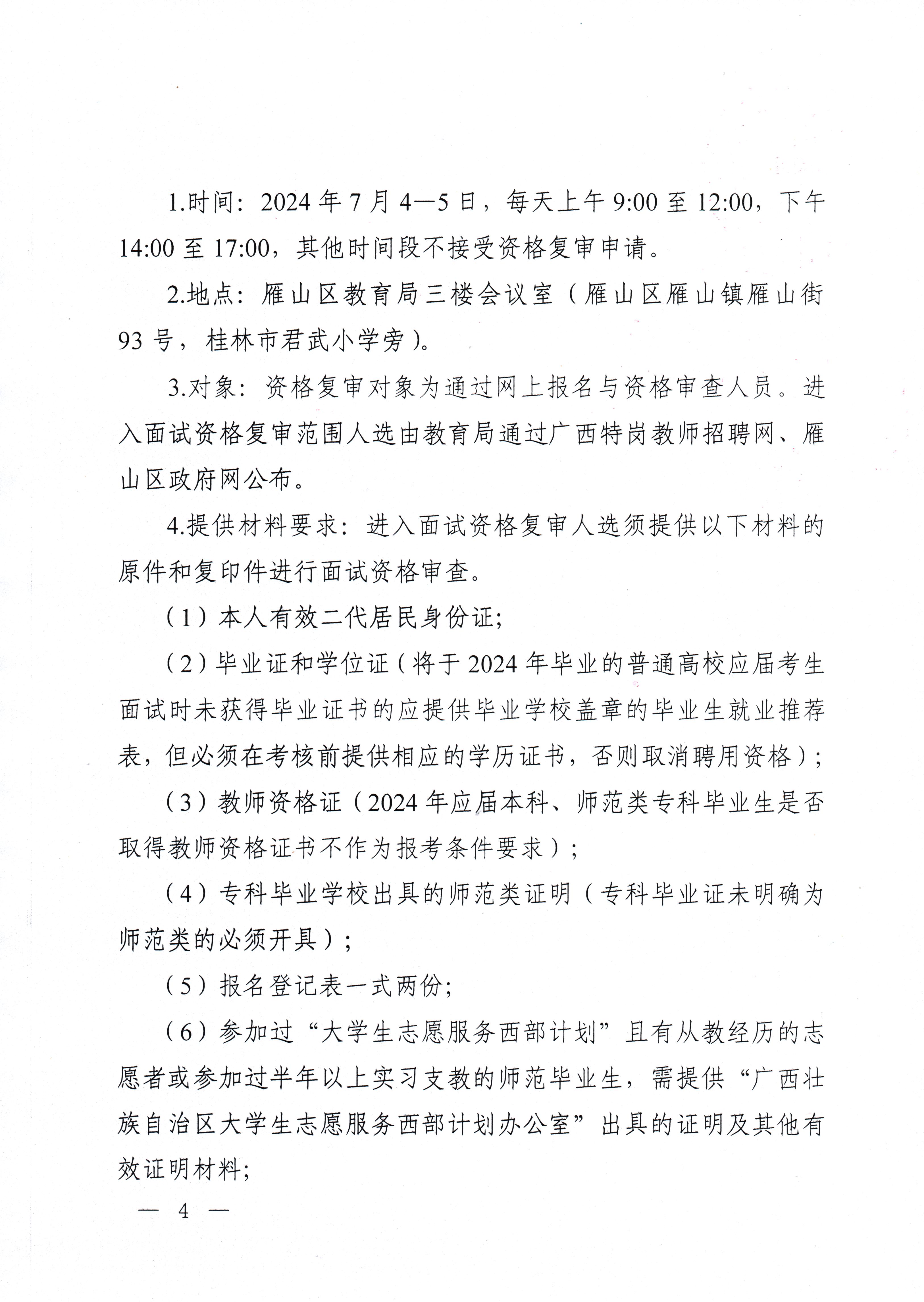 【教育局公告】桂林市雁山區(qū)2024年特崗教師招聘公告