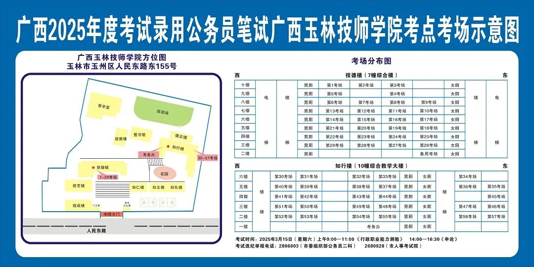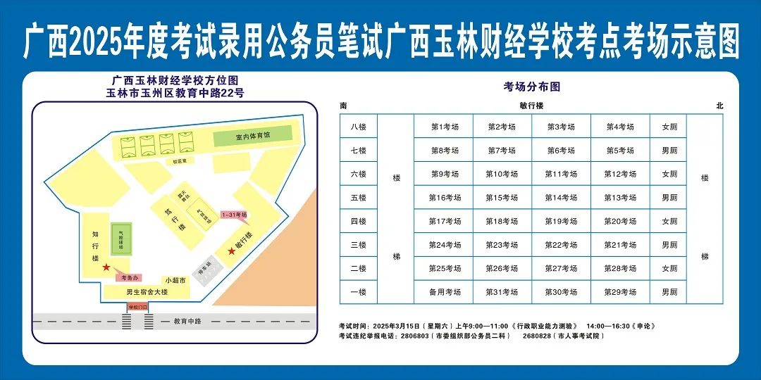 除考試當(dāng)天考生可以進(jìn)入考點(diǎn)外,考生不得提前進(jìn)入考點(diǎn)查看考場(學(xué)校將在大門處擺放考場分布示意圖),玉林考區(qū)11個考點(diǎn)的考場布置情況如下: