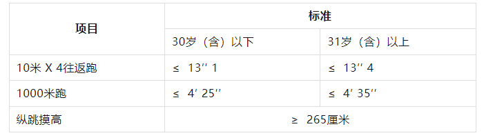報考人員須參加全部三項體能測評。參加者凡有其中一項不達(dá)標(biāo)或放棄,視為體能測評不合格。體能測評合格,方可進(jìn)入下一環(huán)節(jié)。
