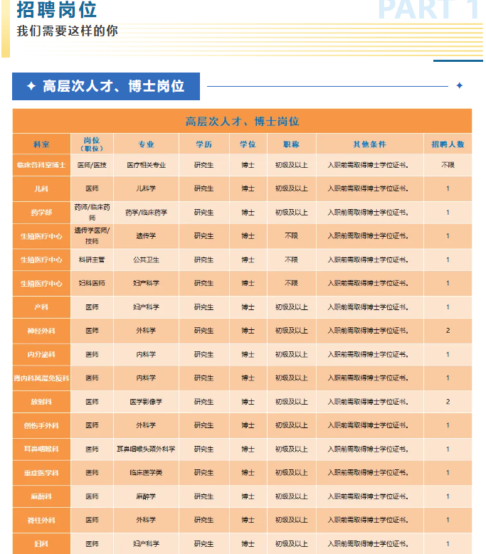 以上崗位均享受醫(yī)院科研獎勵、培訓(xùn)進修、晉升職務(wù)職稱等權(quán)利,以及五險一金、用餐補助、帶薪年休假、工會福利等待遇。