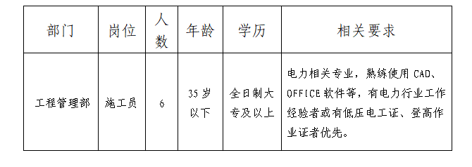 要求服務(wù)意識(shí)強(qiáng),辦事穩(wěn)重,作風(fēng)扎實(shí),服從工作安排、身體健康,具備崗位專業(yè)要求。具體招聘崗位及招聘條件如下表: