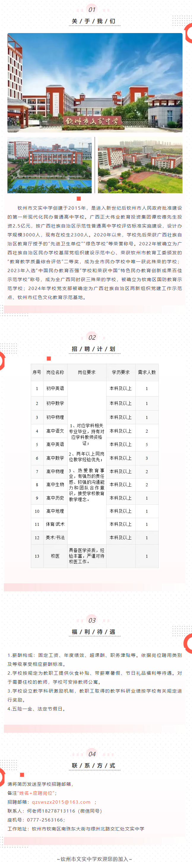 2025年欽州市文實中學秋招聘若干人