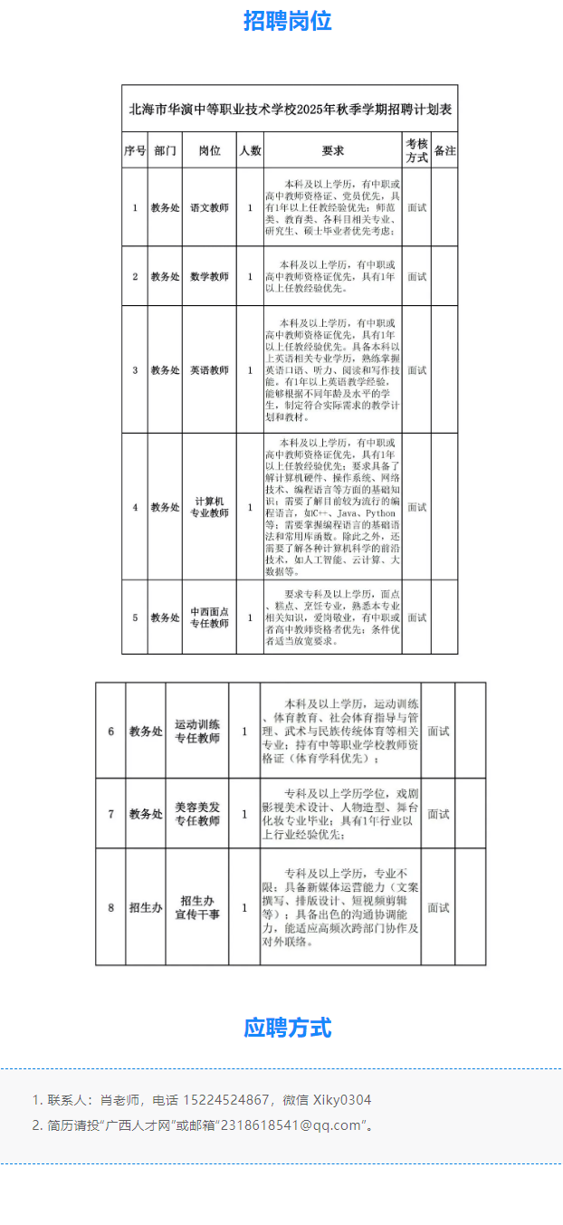 2025年北海市華演中等職業(yè)技術(shù)學校招聘啟事