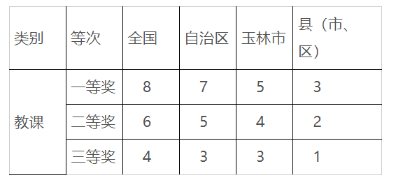 (5)現(xiàn)場教課比賽獲獎(jiǎng):參加教育行政部門或業(yè)務(wù)部門逐級選拔的縣以上的教課比賽獲得一、二、三等獎(jiǎng)勵(lì)給予計(jì)分。此項(xiàng)最高不超過10分。具體計(jì)分如下: