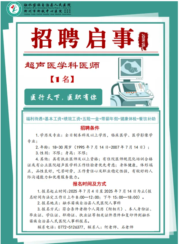 2025年融水苗族自治縣人民醫(yī)院招聘超聲醫(yī)學科醫(yī)師1名