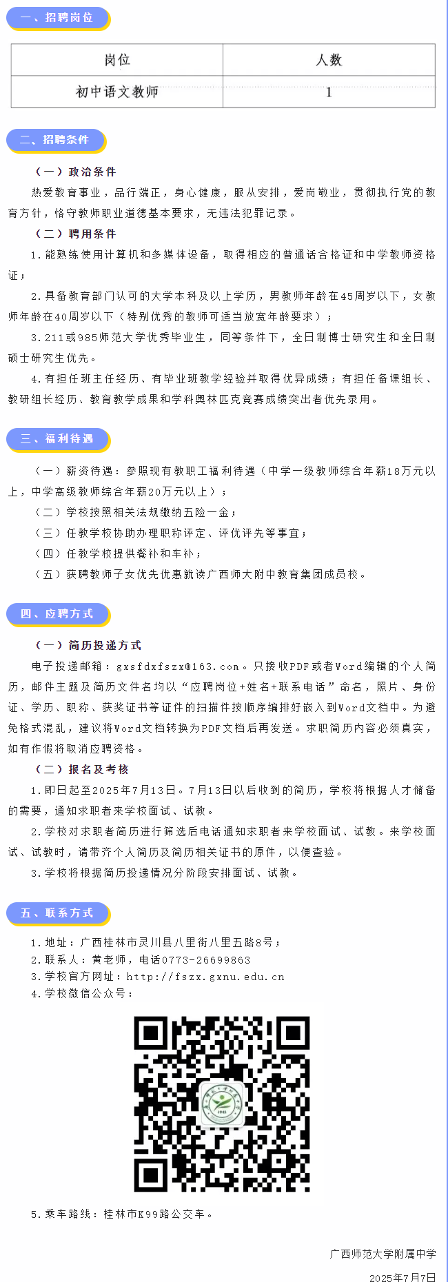 2025年廣西師范大學(xué)附屬中學(xué)面向全國急聘初中語文教師1名