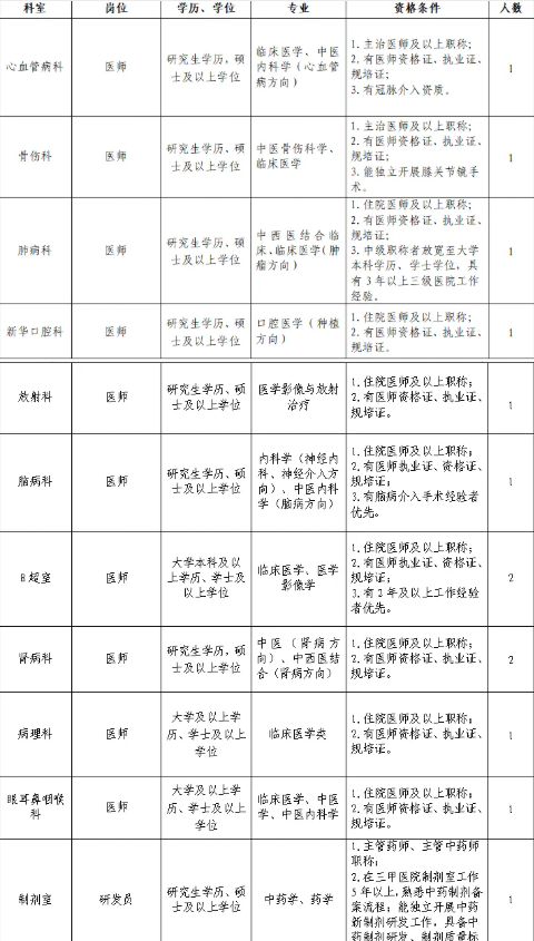 根據(jù)醫(yī)院高質(zhì)量發(fā)展需要,我院誠聘衛(wèi)生醫(yī)療相關(guān)專業(yè)領(lǐng)域的人才,歡迎投簡歷應(yīng)聘。
